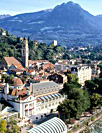 Merano sorge tra la riva del Passirio e la base del Monte Benedetto. Centro ideale della Merano storica č il Cuomo, con il campanile trecentesco. Il fascino maggiore della cittā č dovuto alle splendide passeggiate tra i giardini e parchi. Tutto intorno le incantevoli cime e vallate del Tirolo, punteggiate da castelli; da non mancare una visita alla bella cittā di Bolzano.